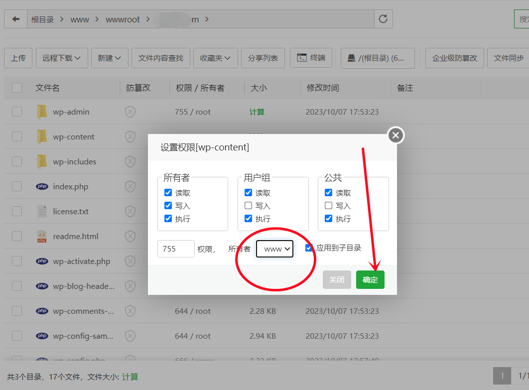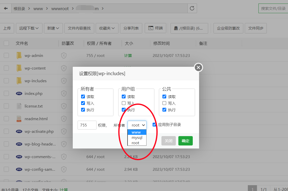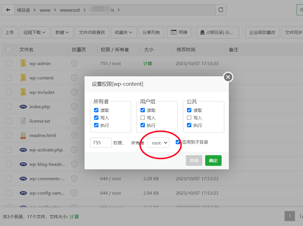 wordpress出現(xiàn)“在您保存修改前,您需要將此文件設置為可寫.請參見更改文件權限文檔.”怎么解決?